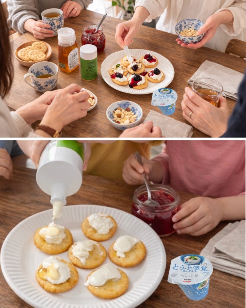 クラッカーの上にヨーグルトをのせたり──♡  と楽しんでおります。